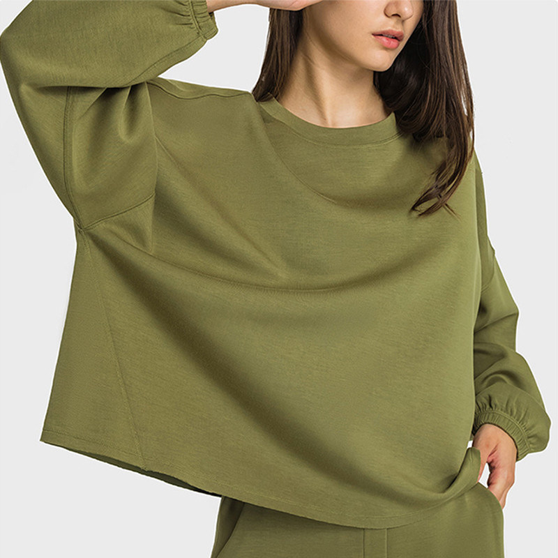 Nama | Musim Dingin Hijau Lengan Panjang Plus Wanita Hoodies Atasan Olahraga Yoga Dengan Manset Elastis |